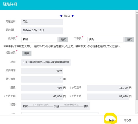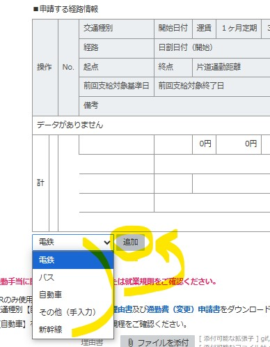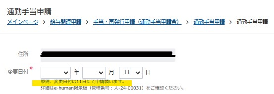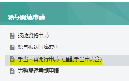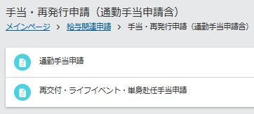 ⓵ サービスメニュー > 給与関連申請 > 手当・再発行申請 > 通勤手当申請