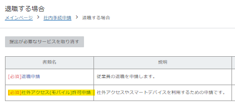 ⓵サービスメニュー > 社内手続申請 > 退職する場合 > 社外アクセス許可申請