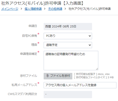 社外アクセス許可申請の登録